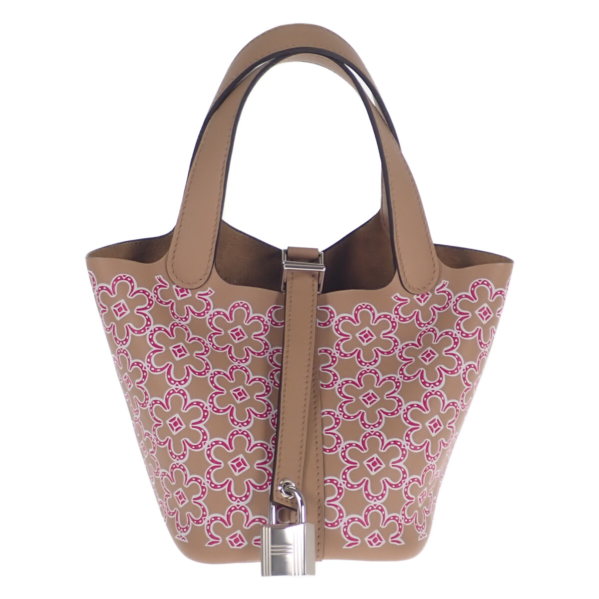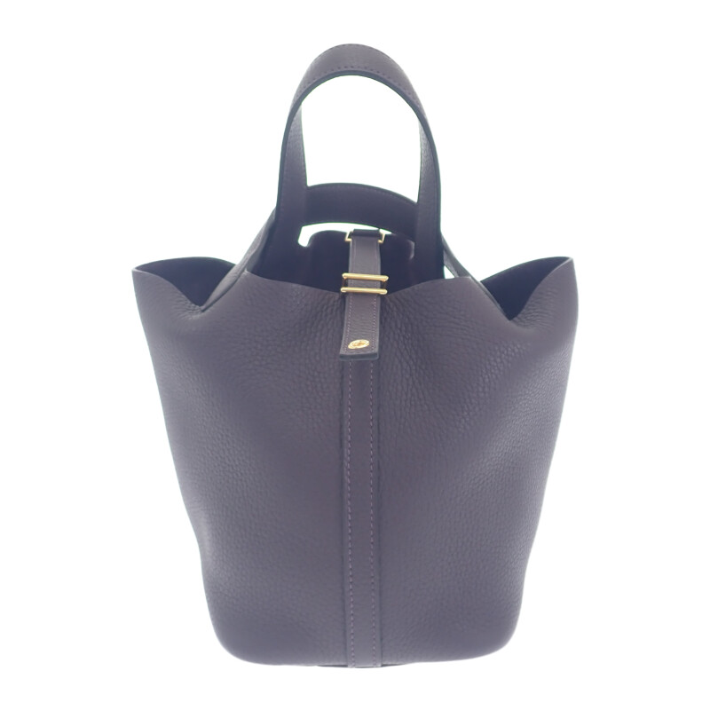 ピコタンロックとは、エルメスの馬具づくりの伝統を背景に生まれた、バケツ型フォルムが特徴の人気バッグです。もともと馬の飼料入れ「ピコタン」から着想を得たデザインで、シンプルながら上質なレザーの魅力が際立ちます。開口部はベルトと“ロック”金具で留める仕様で、可愛らしさと実用性を両立。PM・MMなどサイズやカラー展開も豊富で、日常にさりげない品格を添える定番アイテムとして支持されています。